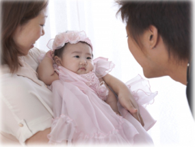 百日のアルバムが届きました。すごく素敵な写真に大満足しています。撮影中ずっと機嫌の悪かった息子を根気よくあやして頂いたおかげだと思っています。(中略)家族に見せても「さすがプロの写真館だね」と言われました。本当にありがとうございました。